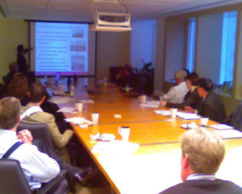 On October 12, 2007, Mr. Thomas J. Plocek, Dr. C.B. Panchal and J.A. Marti, PE provided a presentation on OTEC and OIA to a select group of private investors, a presentation organized by the Center for Economic and Environmental Partnership, Inc. In the picture, Mr. Thomas Plocek presents the OIA strategy. Follow this link to see the program.